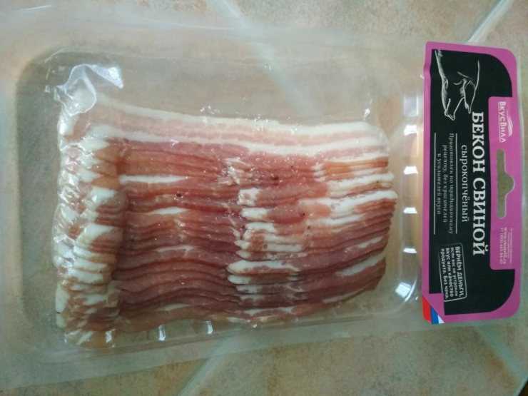 Естественно, он не должен быть просроченным, но, мало того, следите за тем, чтобы срок хранения не превышал 15 суток, именно столько хранится качественный, натуральный бекон без консервантов.