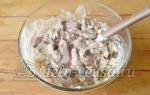 Начните готовить вкусное лакомство с замешивания теста: возьмите большую чашу и вбейте туда яйцо, добавьте сахар, посолите и перемешайте, влейте 150 миллилитров молока. Всыпайте понемногу просеянную муку, продолжая взбивать смесь миксером на высоких оборотах, чтобы избежать комочков. Влейте в чашу оставшееся молоко и растительное масло, снова размешайте тесто и начинайте выпекать блины.