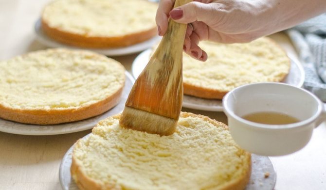 Пропитывать коржи нужно начинать тогда, когда и сироп, и бисквит полностью остыли.