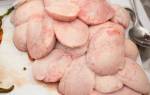 - На сковороду наливается немного масла, кусок обжаривается по 2-3 минуты с каждой стороны и перекладывается в противень.