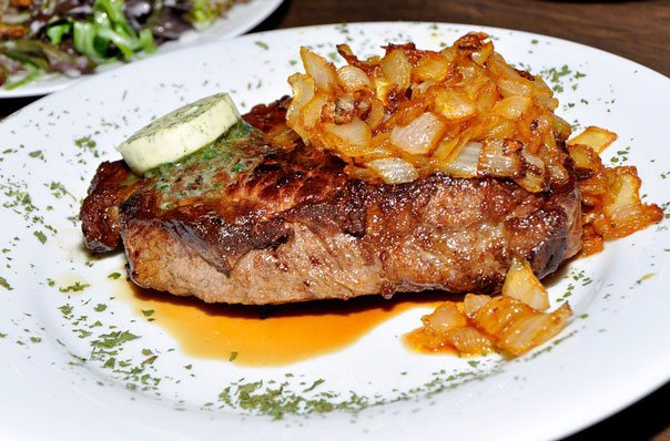 В размягченное сливочное масло добавляем рубленую петрушку с орегано и пропущенный через пресс чеснок. Выкладываем массу на пищевую пленку, сворачиваем и держим некоторое время в холодильнике. Перед подачей отрезаем нужное количество пряного масла и выкладываем его сверху на горячий стейк.