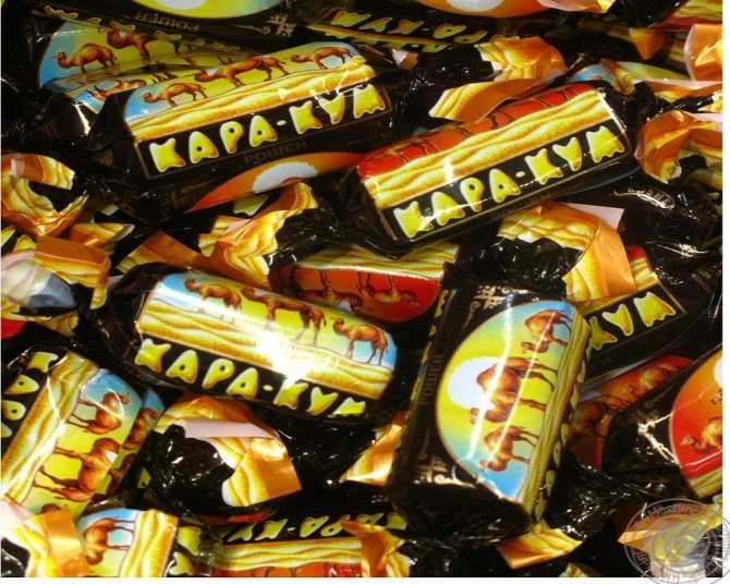 Конфету «Каракум» легко узнать по вкусу, даже если она будет без обертки – ее особенность в том, что начинка этой сладости слегка поскрипывает на зубах, как будто в ней попался песок.