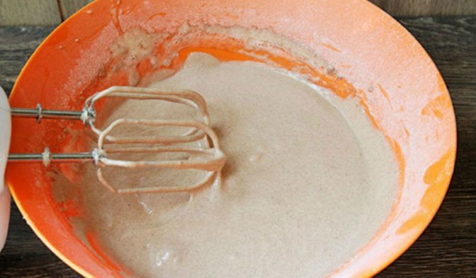Также, после этого нужно внести пару ложек какао-порошка, для шоколадного вкуса. И наконец частями муку (и возможно разрыхлитель, многие производители его рекомендуют добавлять именно вместе с мукой). Размешайте, чтобы тесто стало однородное и без комочков.
