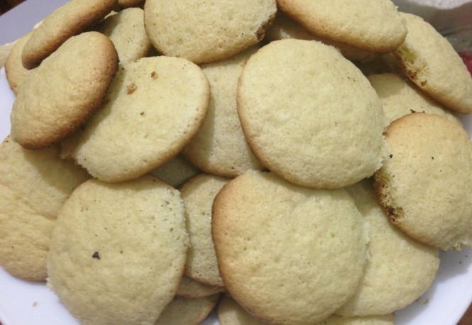 - Теперь нужно испечь бисквиты. Пекутся они быстро — 7-8 минут при 180°C. Лепешки должны стать кремового цвета. Важно их не пересушить, правильно выпеченные бисквиты остаются мягкими. Достаем их из духовки и даем остыть.